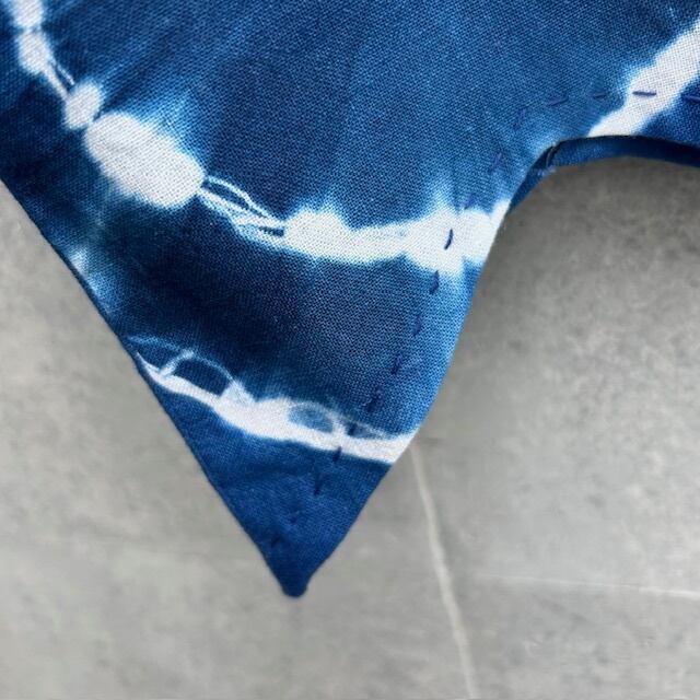 染めを行うのは、世田谷区若林にある就労継続支援B型事業所〈Factory藍〉。幅広い世代のメンバーが、日々藍染製品づくりに励んでいます。デザインから仕上げまで全ての工程に関わる人もいますが、一人ひとりの得意なことや体調に合わせながら、柄をつくる、染める、縫製するなどの作業をそれぞれが担っています。最近は、絞り染めの古典柄の再現にチャレンジしたり、YouTubeで世界の絞り染めを参考にしながら新しい手法を取り入れたりと、メンバーたちが探究心豊かに制作に向き合っています。