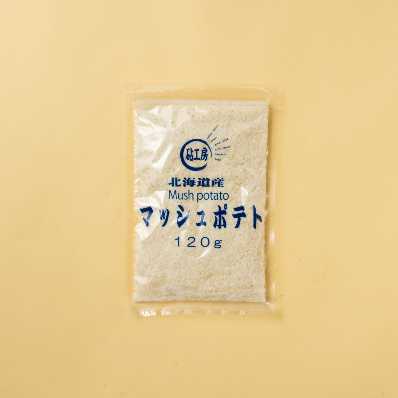 【店舗販売のみ】ポテトフレークにお湯または温かい牛乳を加え、手早くかき混ぜれば、1分もかからずにマッシュポテトが完成! あっという間に仕上がる手軽さとおいしさが評判で、〈砧工房〉の商品の中でも一番人気の商品です。