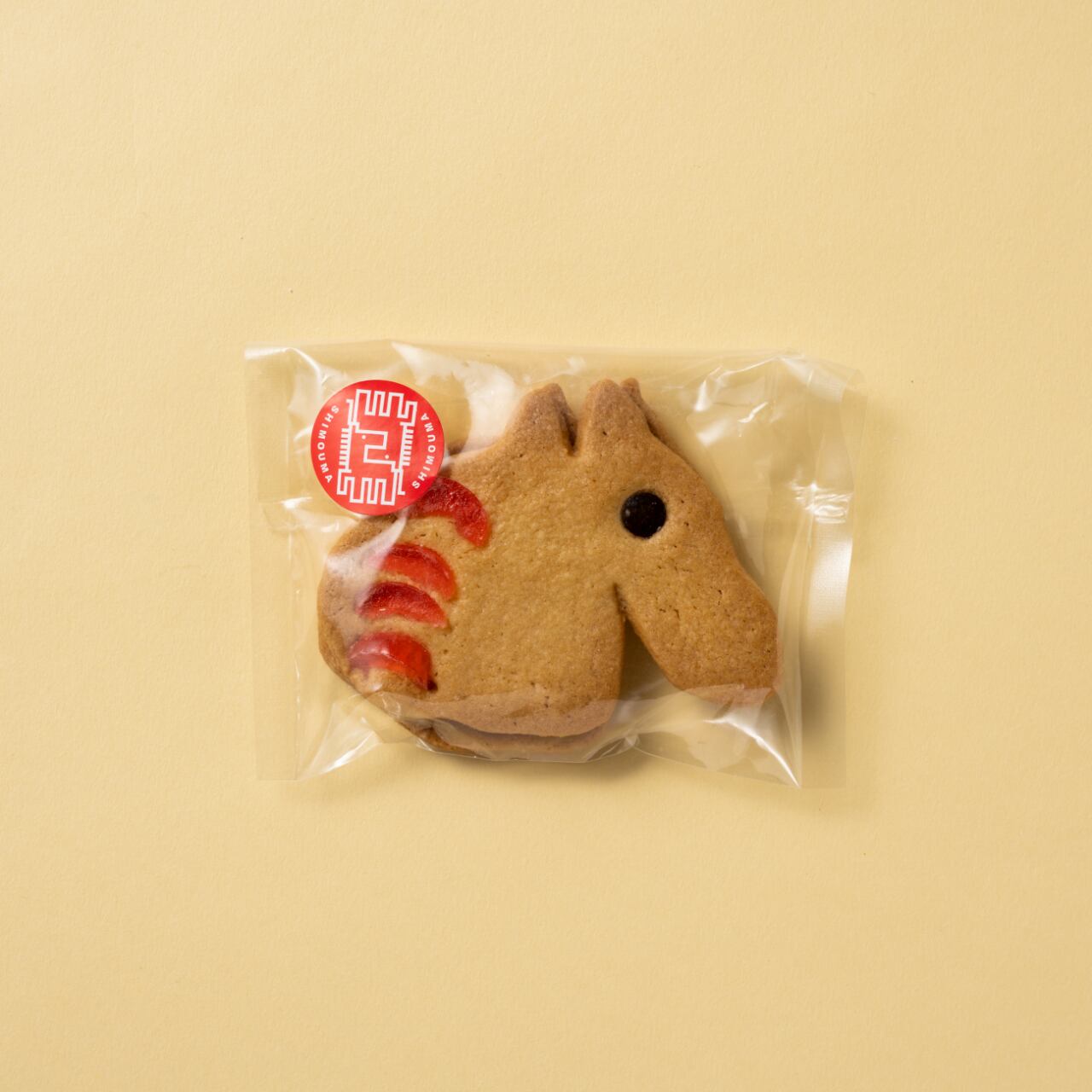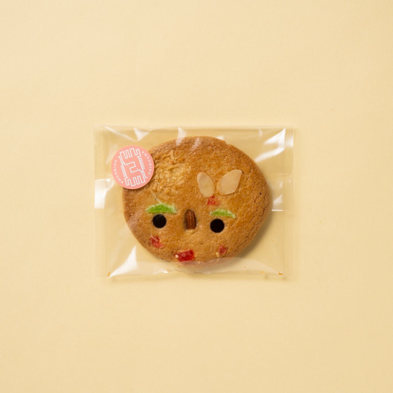 世田谷区下馬育ち、茶髪で丸顔の「しもまるくん」。2002年、就労支援事業を行う〈下馬福祉工房〉で誕生した彼は、強気な顔立ちの妹「しもまるこちゃん」、四角い顔と無精ひげの「しもまるくんパパ」、ポッテリ口元の「しもまるくんママ」の4人家族。さらにはペットの「うま姫」まで存在するという、にぎやかなファミリー設定の“サブレ”です。なんだか食べるのがもったいない!
