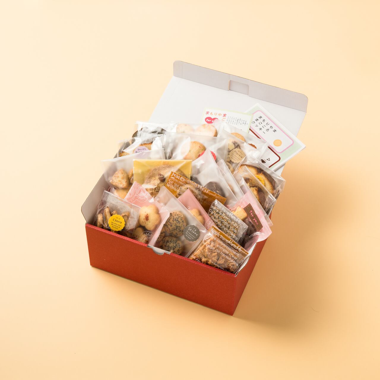 地域の方たちに大好評の〈まもりやま工房〉の焼き菓子が、豪華なギフトセットになりました!サクサクのガレットが2種類、口の中でほろほろっとほどけるパウンドケーキが4種類、そしてバターの香るクッキーが12種類入っています。