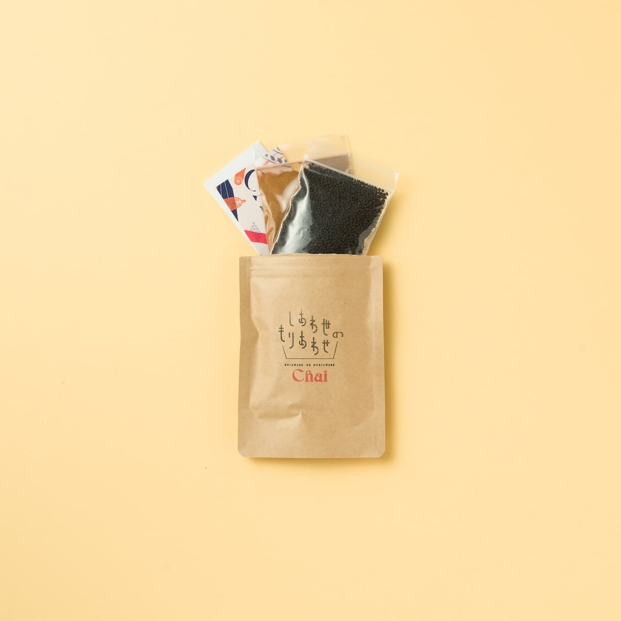 封を開けた瞬間に広がるスパイスの豊かな香り。アッサム茶葉とともに、カルダモン、クローブ、生姜、黒コショウなどがブレンドされた本格派のチャイキットです。大人向けのピリリとスパイシーな味わいで、肌寒くなる季節にぴったり。レシピもパッケージ裏の商品ラベルに書いてあるので、作り方に迷う心配もありません。計量からパッキングまですべて〈世田谷福祉作業所〉のメンバーによる手仕事で、贈りものにもおすすめ。